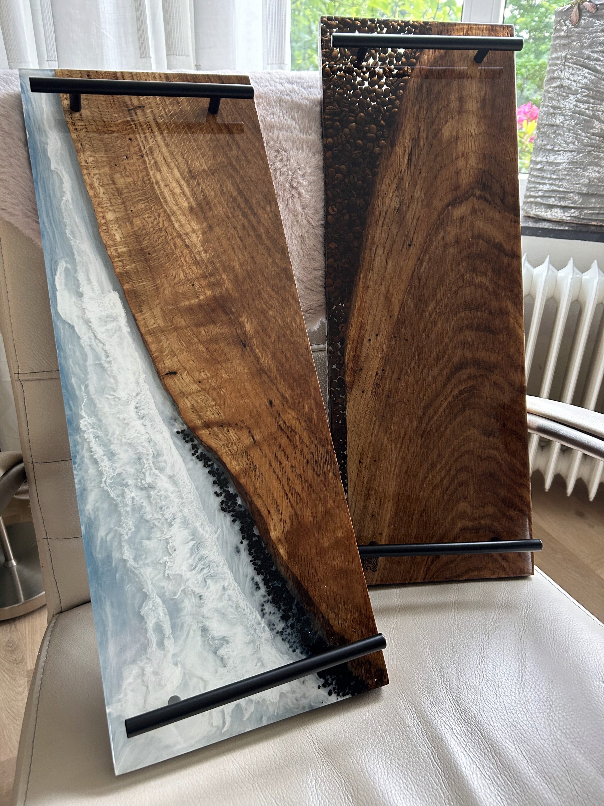 Ik begon klein, met het maken van borrelplanken. Hierbij experimenteerde ik met het frezen van figuren en het verwerken van epoxyhars. Die eerste projecten gaven me enorm veel voldoening en wakkerden mijn nieuwsgierigheid verder aan. Al snel smaakte het naar meer, en groeiden mijn ideeën en ambities.